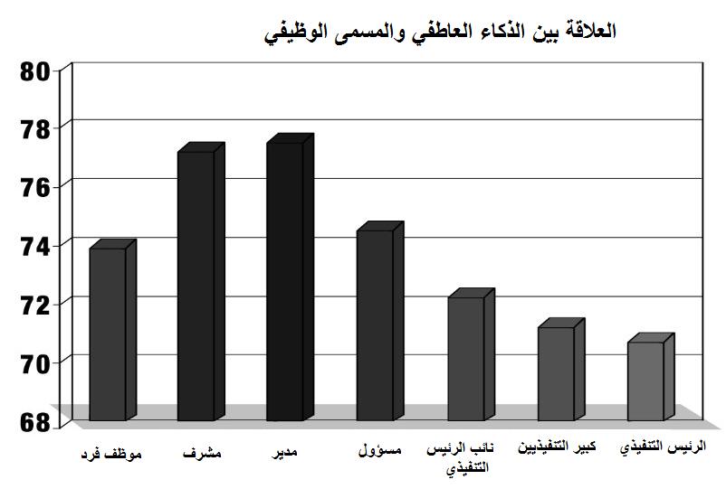 وجدنا أن درجات الذكاء العاطفي (EQ) تتصاعد وتتنامى مع المنصب لدى المستويات الوظيفية المتدنية نسبياً في سلم الشركات التصاعدي حتى تصل إلى المستويات الإدارية الوسطى.