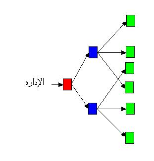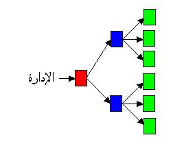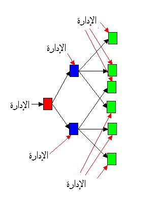تخيل معي الهيكل السابق بعد استدارته ٩٠ درجة وتطبيق تركيز الإدارة الأفقي فإنه يصبح قابل للتوسع كما في الشكل التالي: